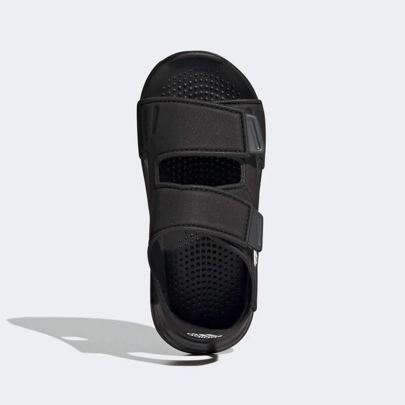 Zonnebrandcrème, check. Vissershoedje, check. Opblaaseenhoorn? Misschien later. Laat je jonge aquanaut de kust verkennen in deze adidas kindersandalen. De klittenbandsluitingen creëren een nauwsluitende pasvorm voor extra pit bij het springen van rots naar rots. De stroeve loopzool laat sporen achter in het zand tot de ondergaande zon het einde van een perfecte dag aankondigt.
