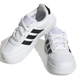 In deze adidas schoenen spurt je kind over elke zaalvloer. Ze zijn met een stroeve rubberen Adiwear-loopzool gemaakt voor abrupte wendingen en snelle sprints. Het gestroomlijnde, lichtgewicht bovenwerk van mesh biedt ventilatie voor koelte tijdens intensief spelen.