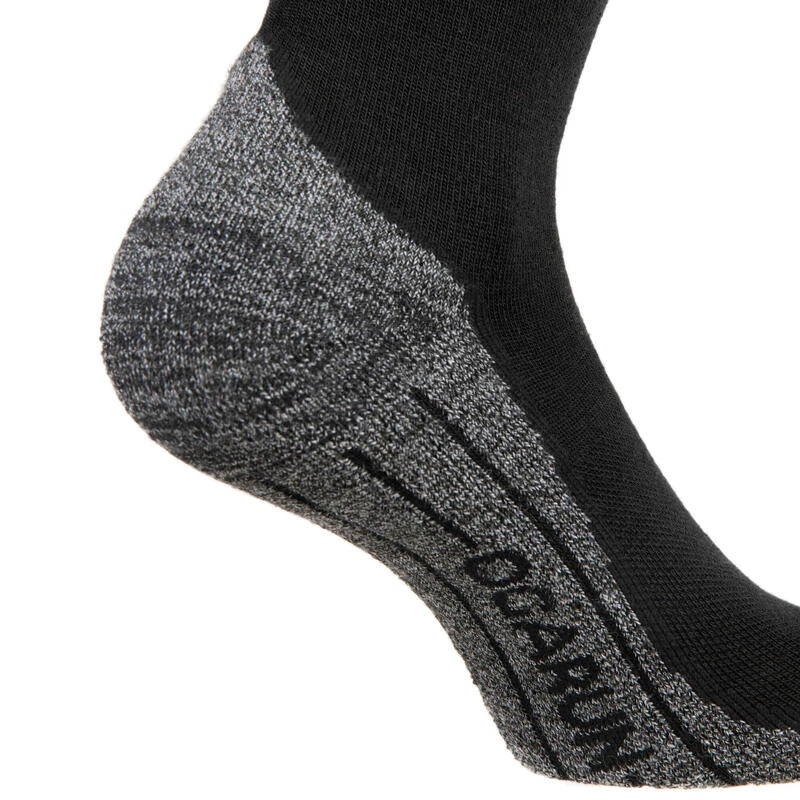 Details: schachthoogte 20 cm (43-45); dubbele garen- en lusvulling op de zool, hiel en teen; OGARUN-markering en schoenmaat op de zool; asymmetrie links/rechts. Kleuren: zwart/grijs. Driedubbele maat van 37 tot 45. Gemengd model. Zit je tussen twee maten in, ga dan voor de kleinere.