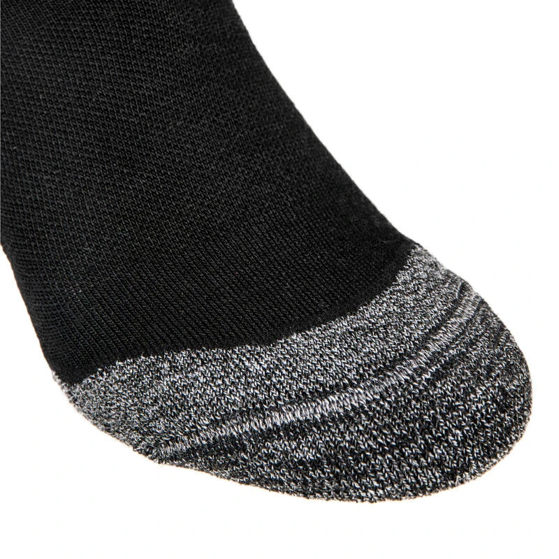 Thermoregulatie: samengesteld uit 38% merinowol, biedt dit garen een uitstekende weerstand tegen verdamping rond de voet: het wollen garen vangt transpiratievocht op tot 35% van zijn gewicht, een niveau dat onmogelijk te handhaven is voor een sok die alleen uit synthetisch garen bestaat.