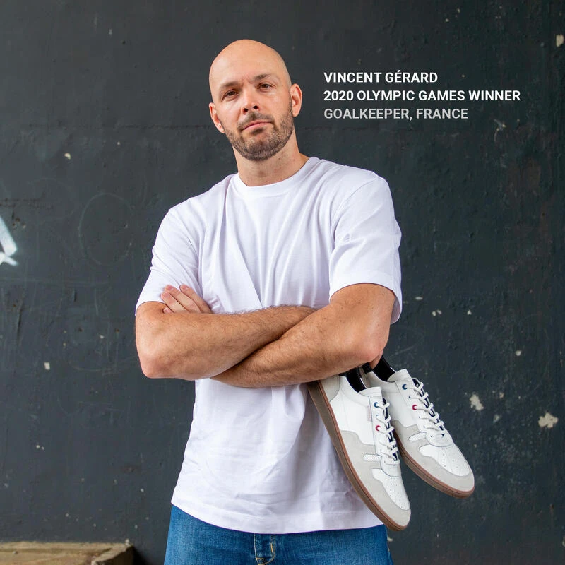 8665542Deze schoen, made in Portugal, werd door onze teams ontwikkeld voor handbalkeepers die 2 tot 3 keer per week trainen.Met de GK500 beschik je over de grip en het comfort om iedere bal snel tegen te houden. Vincent Gérard droeg deze schoenen bij de overwinning op de Olympische Spelen van 2020 en tijdens zijn profseizoen.